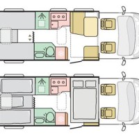 Heckbett: 2.0 x 0.85/1.9 x 0.85 m (1.8 x 0.40 m); Hubbett: 1.93 x 1.38 m; Sitzgruppe: 2.1 x 1.3/0.7 m
