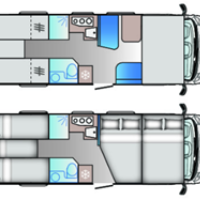 Alkoven: 1.50 x 2.1 m; Heckbett: 2x 2,10 x 0.75 / 1.90 x 0.60 m, Sitzgruppe: 2.10 x 0.95 / 0.70 m