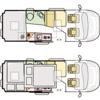 Aufstelldach-Bett: 2,00 x 1.30 m; Heckbeck: 1.95 x 1.45 m.